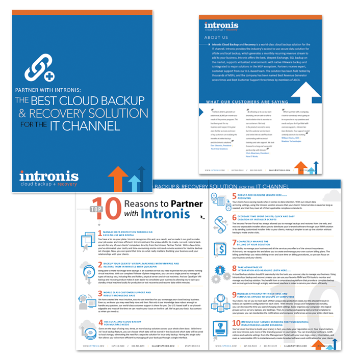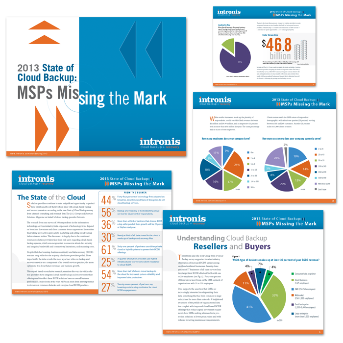 Custom Publishing piece designed for Intronis cloud backup + recovery. Design icons to represent all sectors