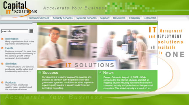 High tech company focusing on Cloud technologies. CSS, Flash, html.