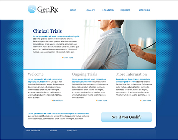 Website and branding/logo design for GenRx Pharmacutical Clinical Trials Inc.