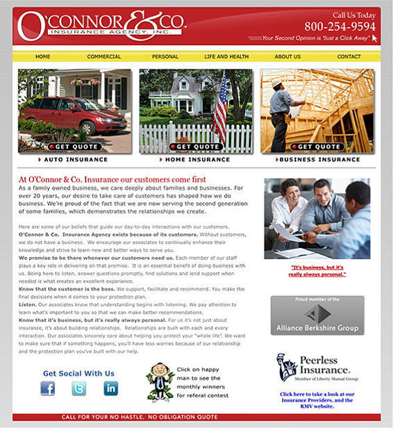 Website design and build, logo/branding design and build for O'Connor Insurance Co. CSS, Flash, html.